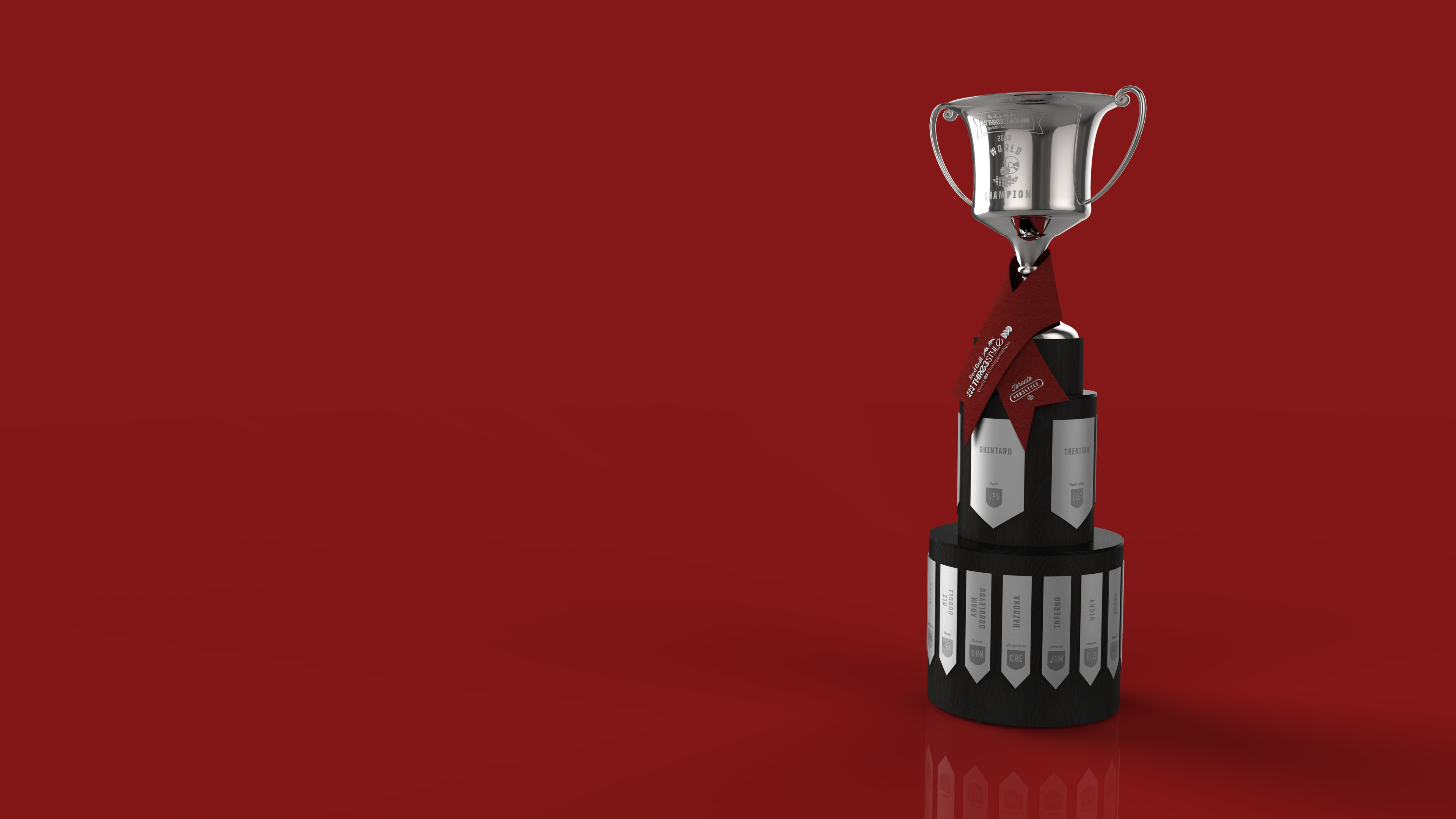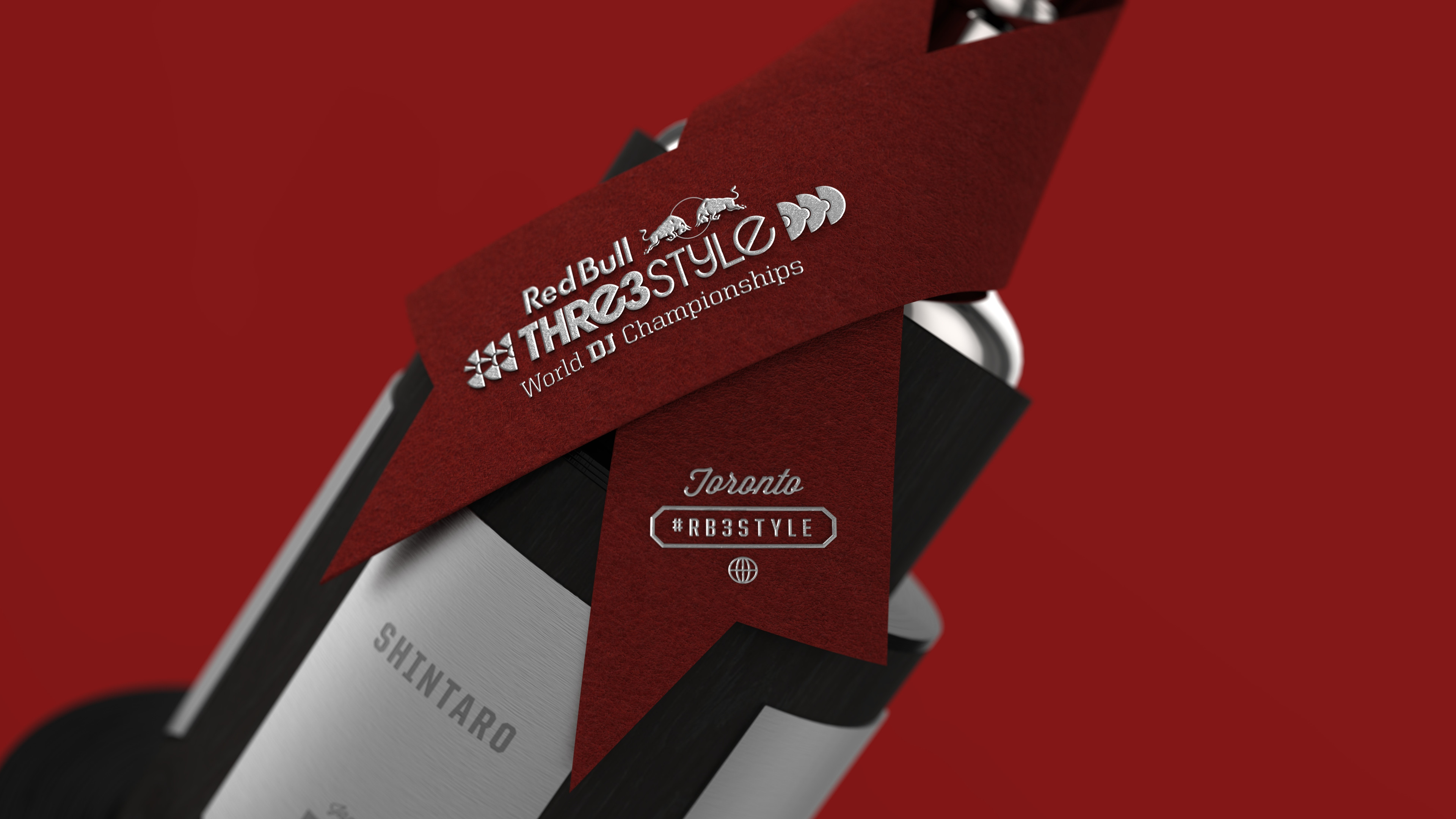 The trophy was designed with other members of the Jacknife team, and built with the help of local vendors. It was presented to the 2013 Red Bull Thre3style champion – DJ Shintaro from Japan.