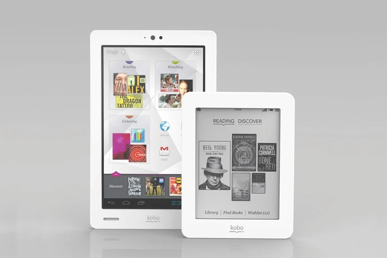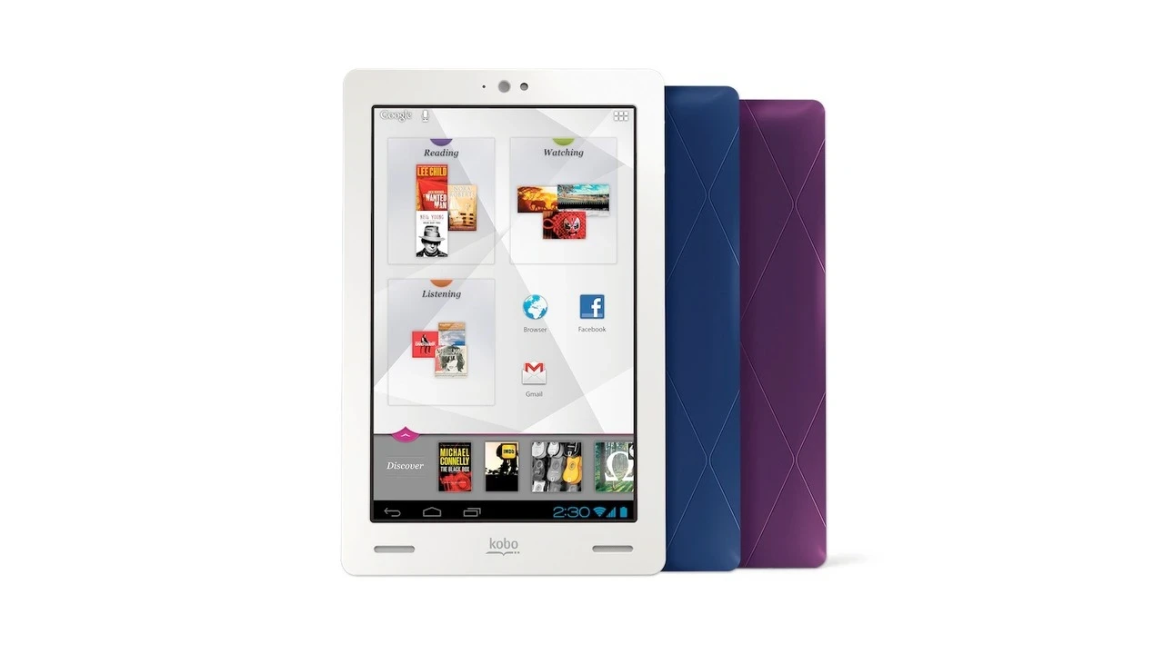 Kobo's second 7" tablet and a pocket-sized eReader. The tablet was designed with a removable back cover that could be replaced with different coloured backs or with integrated accessories.